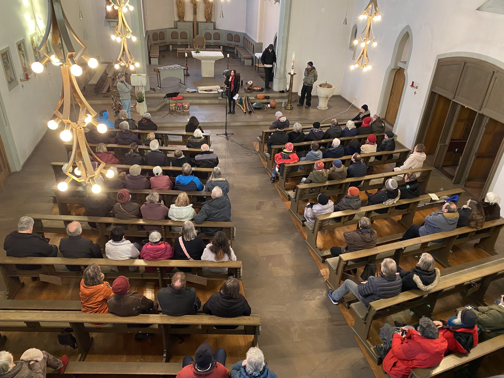 Bei dem Konzert in der Herz Jesu Kirche konnten sich alle Zuhörer auf eine meditative Klangreise begeben. Das Konzert war der eisige Startpunkt einer Reihe unter dem Motto „Fechenheim Sound Stories“. Manche Zuschauer hatten vorausschauend Decken mitgebracht, aber im Anschluss an das Konzert konnte man sich bei einem kleinen Umtrunk im Gemeindezentrum austauschen und sich aufwärmen.